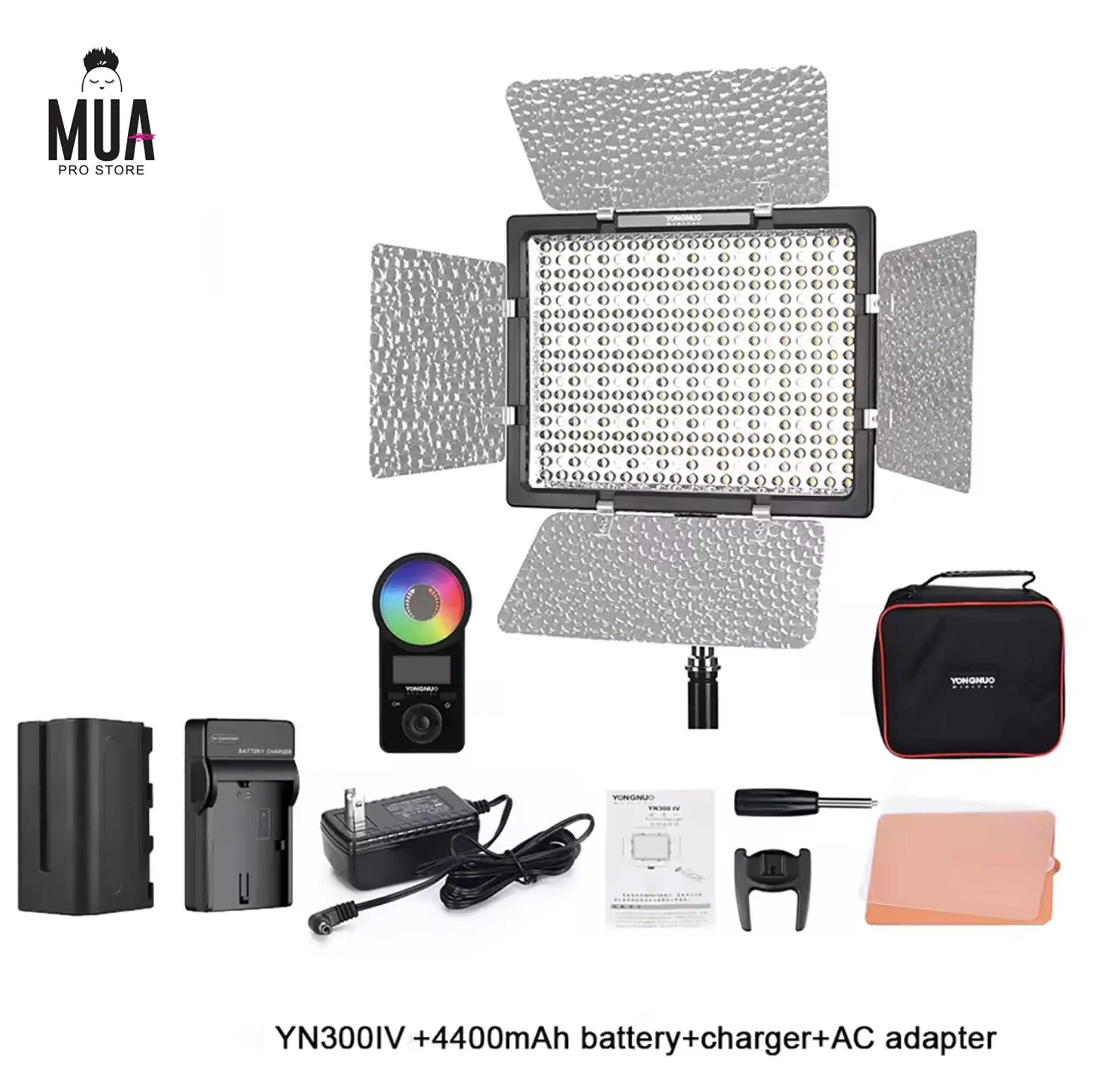 Yongnuo YN300-IV– 3200-5600Κ & RGB LED Light +AC Adapter+Large battery 4400mah+Charger